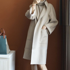 秋冬新款双面羊绒大衣女宽松直筒中长款长袖娃娃领羊毛...