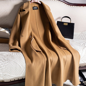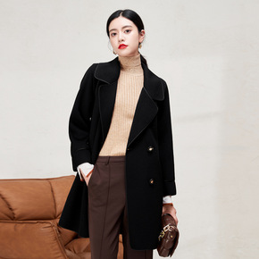 双面羊绒大衣双排扣经典手工羊毛呢大气中长款双面尼大...
