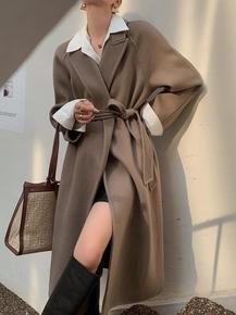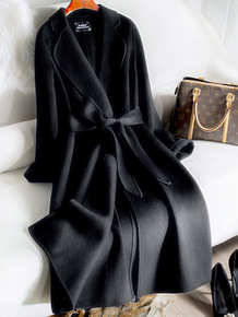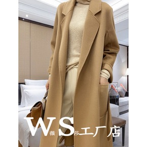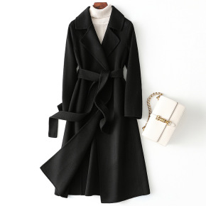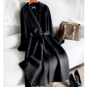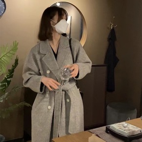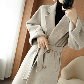 2022秋冬大牌双面羊绒大衣女高级感中长款系带纯羊...