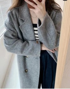 2022秋冬新款双面羊绒大衣宽松设计韩版时尚简约羊...