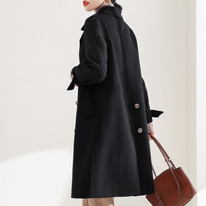 双面羊绒大衣女中长款2022新款欧货亮晶晶秋冬时尚...