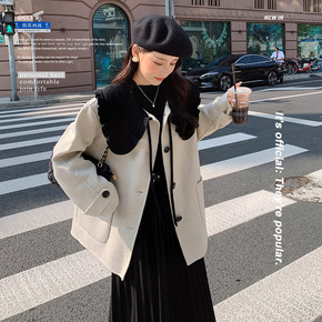 韩系毛呢大衣外套女春秋小个呢子大衣高档2022新款...