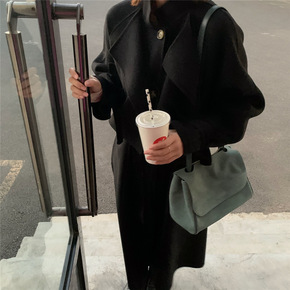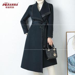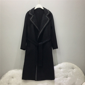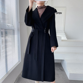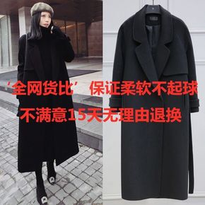 2020女装双面羊绒呢子大衣女过膝秋冬中长款黑色羊...