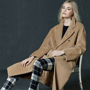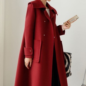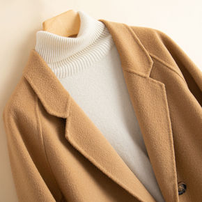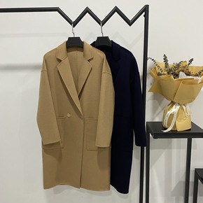 2021秋冬新款大翻领款宽松女式外套双面羊绒羊毛呢...
