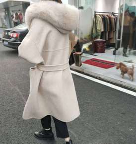 韩风秋冬款双面羊绒女中长款外套狐狸毛领可拆卸大衣新...