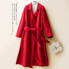 2020秋冬新品羊绒女大衣气质大翻领双面呢修身长款...