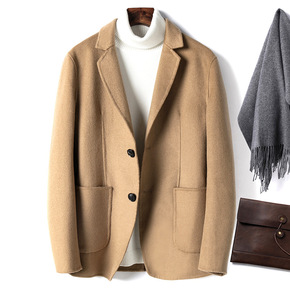 羊毛双面呢大衣男青年韩版秋冬新款无羊绒大衣男士小西...