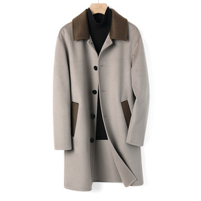 高端双面呢大衣男士中长款羊毛妮子风衣2021秋冬款...