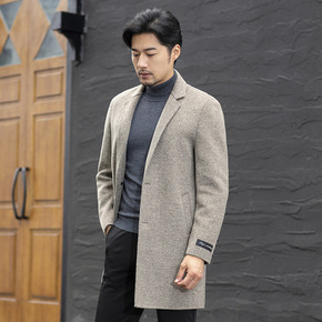 冬季男士毛呢大衣100%羊绒马克劲霸单排扣双面呢子...