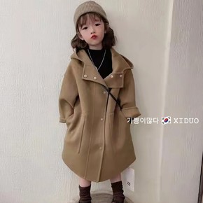 儿童驼色仿双面羊绒收腰大衣2021秋冬女童时尚中长...