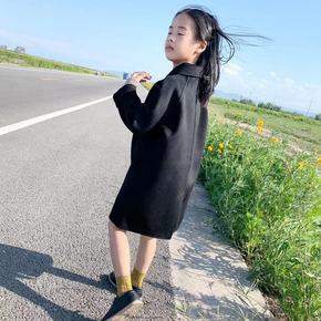 童装春秋新款男童羊毛呢大衣女童双面羊绒呢大衣外套中...