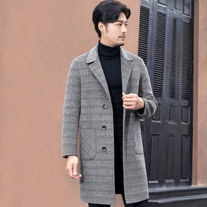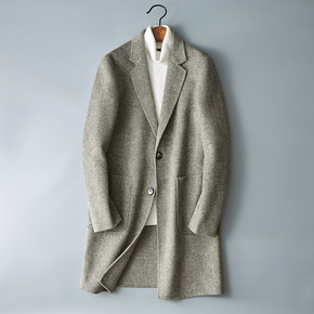 秋冬店主纯手工双面羊绒大衣男 人字纹休闲长款双面呢...