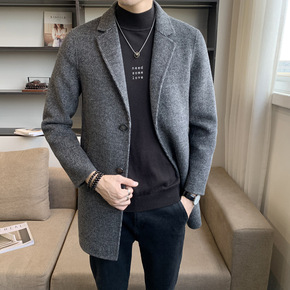 秋冬新款韩版男装双面羊毛大衣男中长款无羊绒男士羊毛...