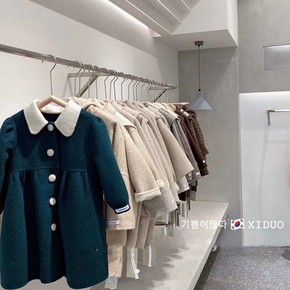 韩系童装男女童牛角扣大衣中长款冬季加厚保暖双面羊绒...