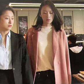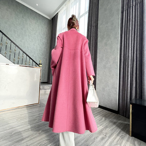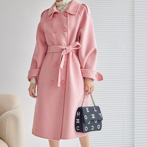 秋冬双面尼粉色羊绒大衣中长款温柔系韩版女宽松双排扣...