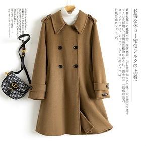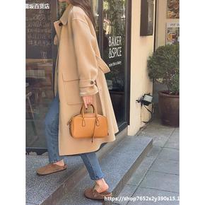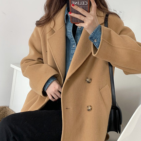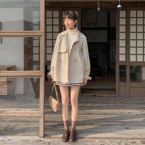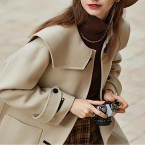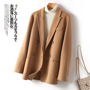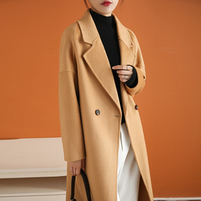 毛呢外套女中长款2021秋冬新款驼色小个子双面羊绒...