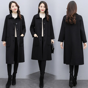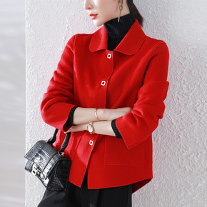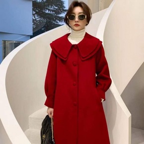 手缝手工双面羊毛大衣女 娃娃领中长款宽松双面羊绒大...