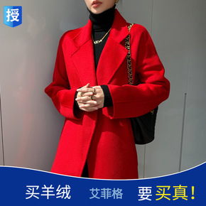 羊毛双面羊绒呢大衣女中长款冬2021新款小个子毛呢...