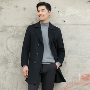 D男式中长款双面昵大衣厚外套西装上衣纯羊毛外套毛昵...