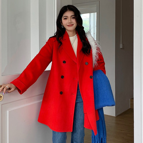 81032双面尼羊绒大衣女2021新款羊毛大衣女韩...