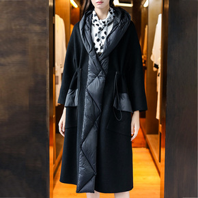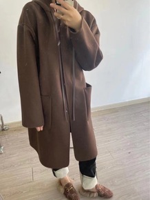 欧洲站连帽皮绳双面羊绒大衣女高端休闲中长款宽松澳洲...