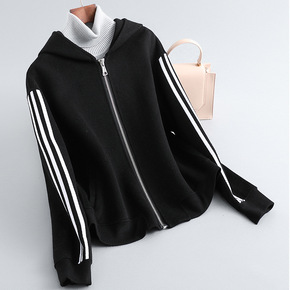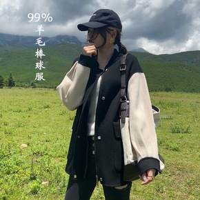 秋冬季双面呢拼色羊绒棒球服女士半高领短款毛呢外套9...