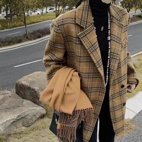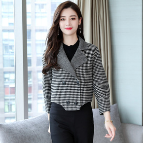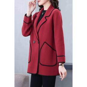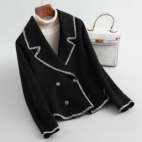 女士西装领短款外套2022年春季新款加肥大码双面羊...