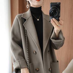 2022秋冬新款双面呢羊绒大衣女小个子羊毛宽松短款...