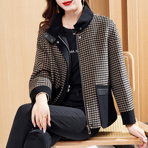 2022流行短款100%羊毛呢子小外套大码小香风双...