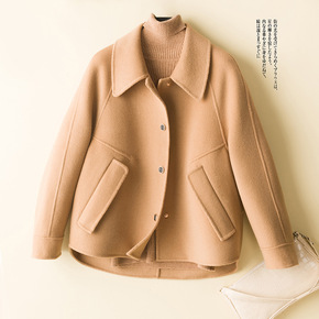 2022新款韩版立领小个子双面呢羊绒羊毛大衣短款毛...