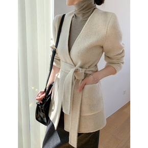 2022秋冬新款短款双面羊绒大衣女 高级感小个子毛...