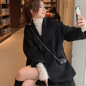 秋冬新款双面羊毛大衣女短款小个子韩版修身西装领羊毛...