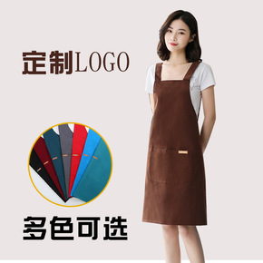 简约无袖纯色交叉X背带防泼水围裙logo图案印字烘...