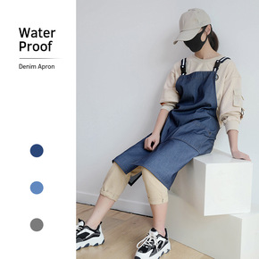 亚马逊韩日式全棉帆布牛仔防水围裙服围兜围腰纯棉厨房...