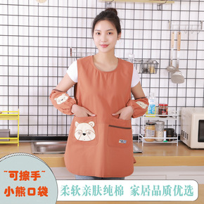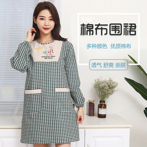 新款成人罩衣女士纯棉围裙时尚可爱家用防污厨房男长袖...