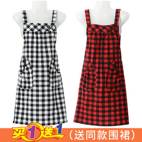 新款时尚纯棉防水简约女围裙家用厨房做饭夏季无袖工作...