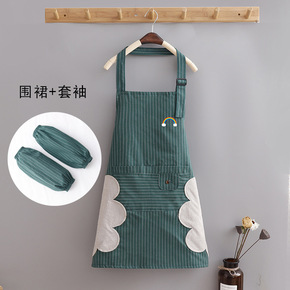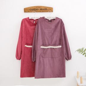 厨房家用时尚女士防污做饭围裙可爱日系工作服长袖灯芯...