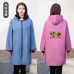 加绒秋冬加厚罩衣大人长袖围裙家用厨房时尚防水工作服...