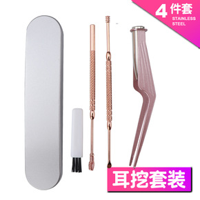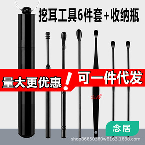 厂家批发不锈钢耳勺6件套便携双头螺旋挖耳勺耳朵掏耳...