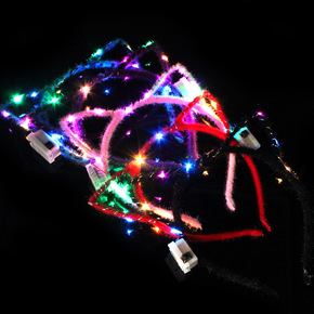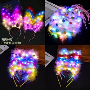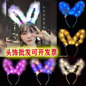 新款热销发光猫耳朵发箍发光羽毛兔耳朵米奇耳朵LED...