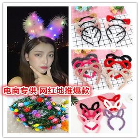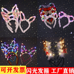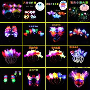 儿童节发光发箍带灯牛角头箍鹿角花环头饰兔耳朵活动道...