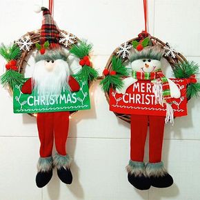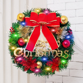 圣诞节装饰花环发光带灯门挂藤圈挂饰橱窗挂件欢迎字母...