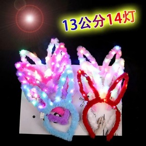 高亮加长14灯长毛绒发光兔猫耳朵发箍地推夜市地摊小...
