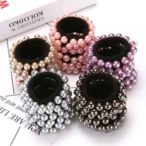 新款发饰 16颗珍珠无接缝毛巾圈发圈发绳2元店货源...