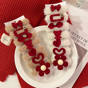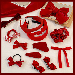 7件套圣诞植绒红色头绳秋冬毛绒扎头发丸子头发圈小女...