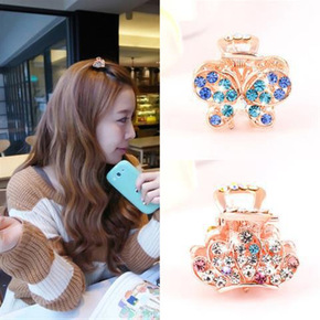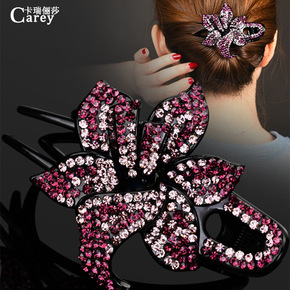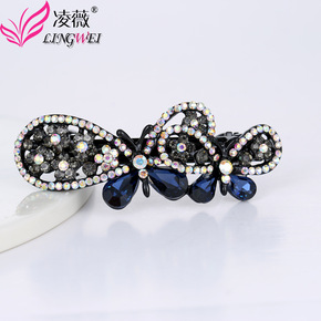 韩版头饰女士水钻发夹简约成人小号弹簧夹黑色复古后脑...