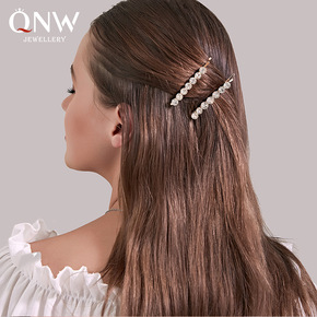 刘海发卡头饰发夹头饰一字顶夹发饰淡水珍珠边夹饰品成...