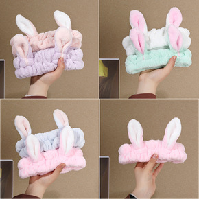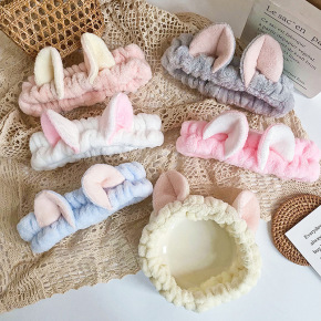 超萌可爱立体兔耳朵发带 洗脸化妆面膜束发发带 宽边...