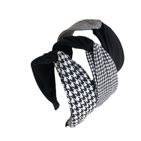 2021跨境宽边交叉撞色千鸟格黑色网红气质头箍洗脸...