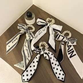 字母蝴蝶结丝巾飘带发带夏季薄款绑发珍珠头绳发圈女超...
